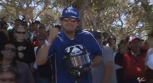 De ellos se acordó después de la caída, o al menos, del hombre anuncio de Yamaha porque después de ver que el casco seguramente había sufrido desperfectos, decidió lanzarlo y al menos alegrar a alguien.
