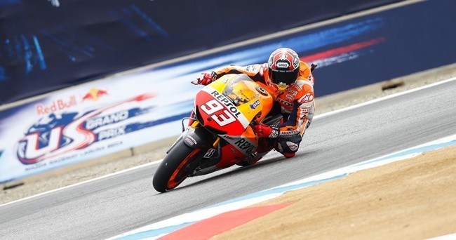 Con Jorge Lorenzo y Dani Pedrosa prudentes, un Valentino Rossi que está en uno de los circuitos que no le gustan y todavía fuera de punto y un Cal Crutchlow por encima de las posibilidades de la Yamaha del Tech3, Marc Márquez ya ha dado el primer aviso en los entrenamientos libres del Gran Premio de Estados Unidos que ha arrancado hoy en el circuito de Laguna Seca.