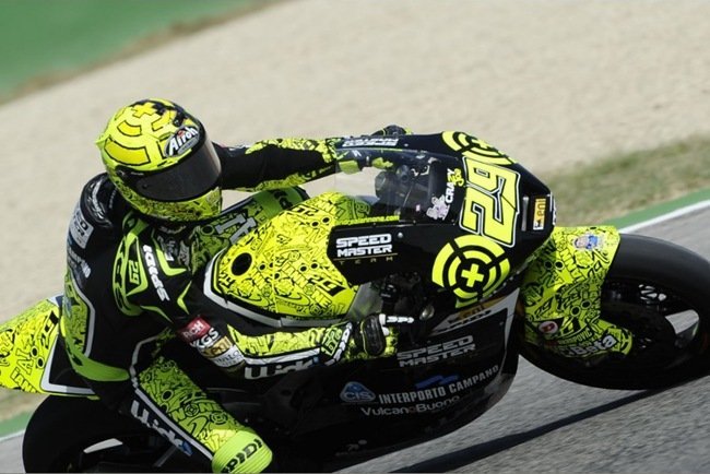 1 25 29 Andrea IANNONE ITA Speed Master Suter 152,6 43'25.007 2 20 93 Marc MARQUEZ SPA Team CatalunyaCaixa Repsol Suter 152,5 +1.999 3 16 12 Thomas LUTHI SWI Interwetten Paddock Moto2 Suter 152,4 +3.686 4 13 65 Stefan BRADL GER Viessmann Kiefer Racing Kalex 152,3 +4.313 5 11 3 Simone CORSI ITA Ioda Racing Project FTR 152,3 +4.647 6 10 15 Alex DE ANGELIS RSM JIR Moto2 Motobi 152,3 +4.813 7 9 38 Bradley SMITH GBR Tech 3 Racing Tech 3 152,0 +10.520 8 8 77 Dominique AEGERTER SWI Technomag-CIP Suter 152,0 +10.725 9 7 34 Esteve RABAT SPA Blusens-STX FTR 151,9 +11.387 10 6 36 Mika KALLIO FIN Marc VDS Racing Team Suter 151,9 +12.803 11 5 19 Xavier SIMEON BEL Tech 3 B Tech 3 151,5 +18.259 12 4 13 Anthony WEST AUS MZ Racing Team MZ-RE Honda 151,4 +20.815 13 3 51 Michele PIRRO ITA Gresini Racing Moto2 Moriwaki 151,2 +23.795 14 2 75 Mattia PASINI ITA Ioda Racing Project FTR 151,2 +24.388 15 1 44 Pol ESPARGARO SPA HP Tuenti Speed Up FTR 150,6 +34.071