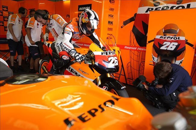 Hoy hay que reconocerlo. MotoGP ha sido la categoría reina con todas las letras y nos ha ofrecido un espectáculo impresionante, con unos entrenamientos que no han dejado indiferente a nadie. Y es que hay mucho que contar. Por supuesto hay que empezar por Dani Pedrosa, que se ha hecho con la pole de una forma brillante y que se ha mostrado muy rápido tanto en la mañana como en la tarde, siendo el único que ha logrado mantener un excelente ritmo de 1’56 durante varias vueltas. Dani conseguía el tiempo definitivo cuando faltaba un minuto para acabar la sesión y ¿sabéis a quién le arrebataba el primer puesto? Pues a un inspiradísimo Ben Spies, que por primera vez esta temporada, ha mostrado todo su potencial y ha sido protagonista durante todo el entreno, acabando en una segunda plaza que le deja muy buen sabor de boca obviamente. ¡Alucinante!
