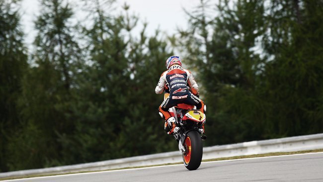 A pesar de que las nubes amenazaban con descargar sobre el territorio checo el clima se ha portado con la que se supone es la categoría reina. Sin embargo, la temperatura del asfalto ha debido coger por sorpresa a los equipos de las tres categorías porque las caídas perdiendo agarre se han sucedido sin contemplaciones. Eso bien lo sabe Dani Pedrosa que cuando estaba poniendo los cimientos de una victoria aplastante se fue al suelo sin poder hacer nada por remediarlo.