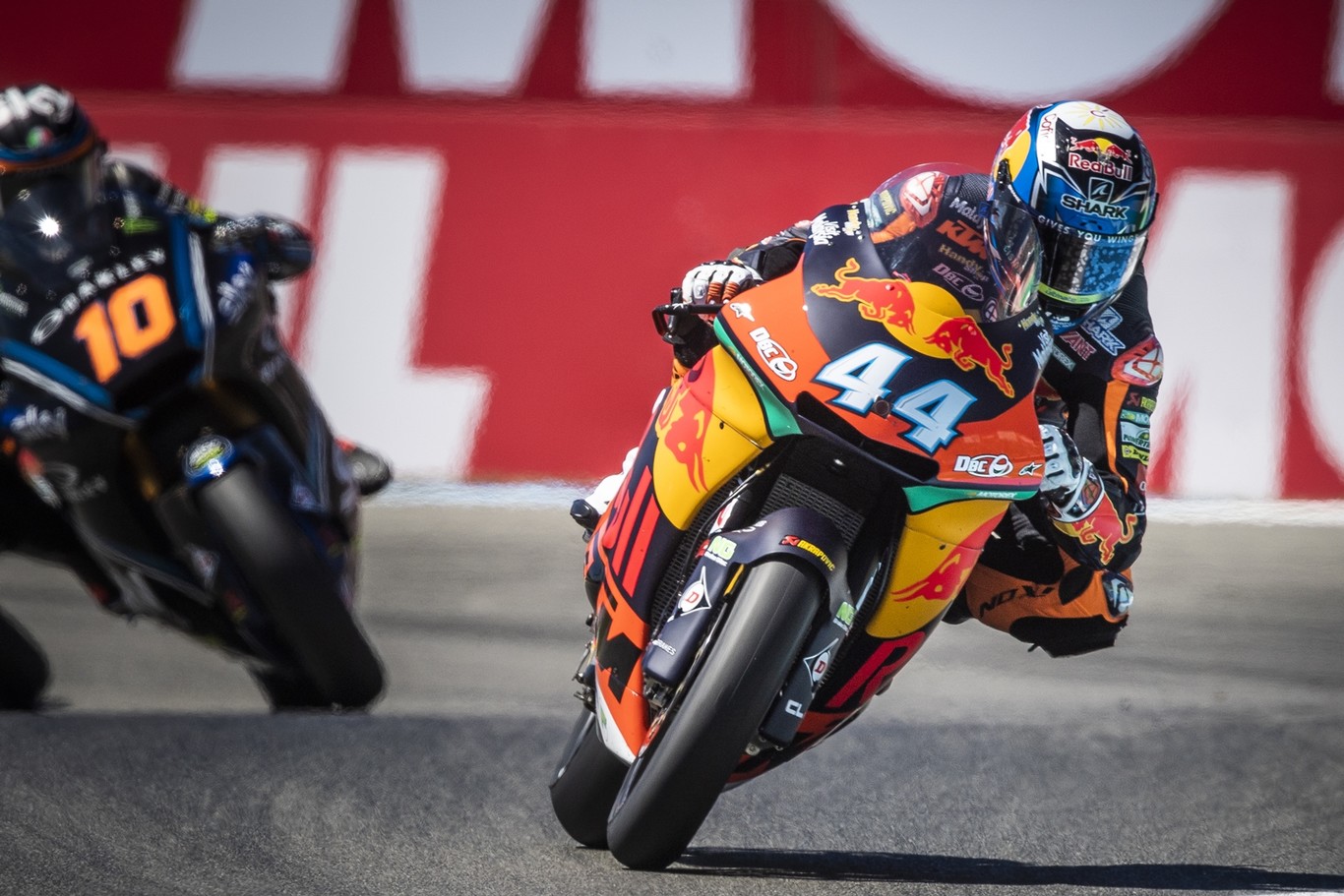 El piloto de Pons rebasó a Oliveira a falta de 7 vueltas para el final, pero no fue suficiente para él, pasando a Marini sólo unas curvas más tarde, haciendo lo propio también con Bagnaia antes de finalizar esa vuelta. De cuarto a primero en un solo giro.