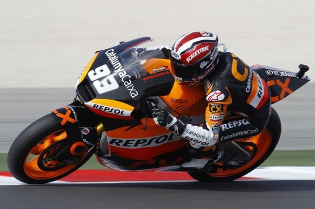 1 25 93 Marc MARQUEZ SPA Team CatalunyaCaixa Repsol Suter 152,8 43'08.197 2 20 65 Stefan BRADL GER Viessmann Kiefer Racing Kalex 152,8 +0.619 3 16 29 Andrea IANNONE ITA Speed Master Suter 152,8 +0.713 4 13 15 Alex DE ANGELIS RSM JIR Moto2 Motobi 152,7 +1.634 5 11 45 Scott REDDING GBR Marc VDS Racing Team Suter 152,6 +3.275 6 10 38 Bradley SMITH GBR Tech 3 Racing Tech 3 152,6 +3.436 7 9 72 Yuki TAKAHASHI JPN Gresini Racing Moto2 Moriwaki 152,5 +5.255 8 8 12 Thomas LUTHI SWI Interwetten Paddock Moto2 Suter 152,3 +8.739 9 7 44 Pol ESPARGARO SPA HP Tuenti Speed Up FTR 152,1 +13.224 10 6 3 Simone CORSI ITA Ioda Racing Project FTR 152,0 +13.551 11 5 34 Esteve RABAT SPA Blusens-STX FTR 151,8 +17.533 12 4 60 Julian SIMON SPA Mapfre Aspar Team Moto2 Suter 151,8 +18.163 13 3 77 Dominique AEGERTER SWI Technomag-CIP Suter 151,8 +18.254 14 2 51 Michele PIRRO ITA Gresini Racing Moto2 Moriwaki 151,7 +19.180 15 1 36 Mika KALLIO FIN Marc VDS Racing Team Suter 151,4 +24.454