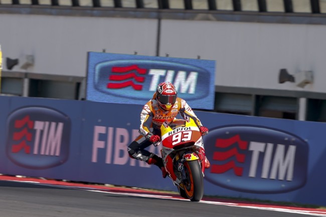 Unas condiciones desconocidas para todos los pilotos, ya que este año Misano se ha re-asfaltado y nadie había rodado en mojado sobre ese asfalto. Incluso a los fuera de serie como Jorge Lorenzo y Marc Márquez les afectaba esta incertidumbre, y pudimos ver durante unas vueltas pasadas propiciadas por errores típicos de una carrera bajo la lluvia.