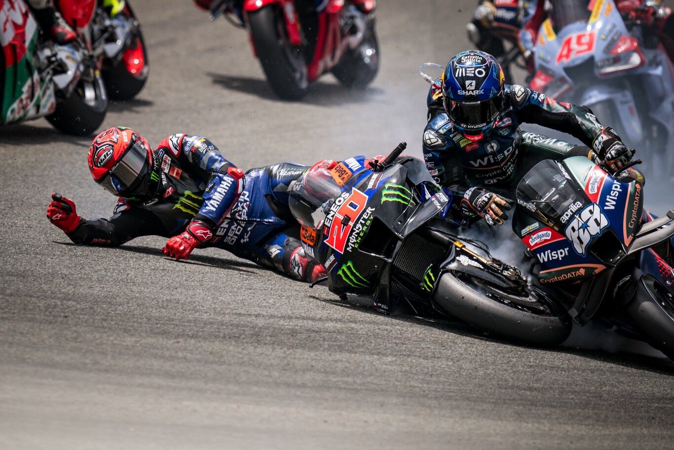El otro gran perjudicado de la aleatoriedad de los comisarios fue Fabio Quartararo, que tuvo que cumplir con una Long Lap Penalty por su accidente con Miguel Oliveira, a pesar de que viendo las imágenes parece la definición gráfica de lo que es un lance de carrera: "Fuimos a reclamar y no dieron ninguna explicación", señala 'El Diablo'.