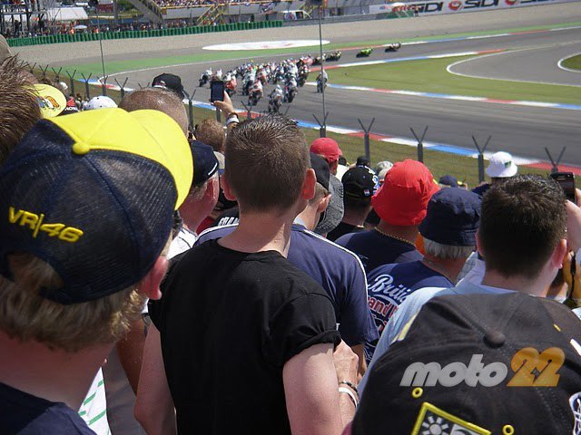 El contraste entre una categoría y otra es impresionante, pasando de no poder ver con claridad la pasada de los pilotos de Moto2 a poder seguir mentalmente quien es el piloto al que le toca pasar por tu tribuna en la categoría de Moto GP. Y esto sin lugar a dudas va en detrimento del espectáculo pudiendo ver carreras de Moto GP tan aburridas como la que vimos en Holanda, en la que Lorenzo hizo una carrera a lo Pedrosa y la única emoción que despertó en los aficionados que allí nos encontrábamos fue la lucha del quinto y sexto puesto entre Andrea Dovizioso y Randy De Puniet.