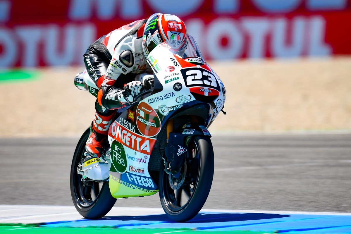 Recordemos que en esta categoría de momento tampoco hay ningún piloto que haya repetido victoria. Siete pilotos diferentes han ganado las siete carreras que llevamos. Toba, como Antonelli, podrían ser el primer repetidor. Completa la primera fila de parrilla el italiano Tony Arbolino, que perdió su vuelta rápida en el último sector.