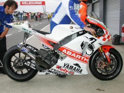 Ya os informamos hace unos días que Chris Vermeulen iba a homenajear a Barry Sheene en el Gran Premio de Australia. Pues bien, no va a ser el único que disponga de una montura con diseño exclusivo para Phillip Island. En concreto, las 2 Yamaha oficiales de Valentino Rossi y Colin Edwards van a lucir una decoración que traerá grandes recuerdos a los amantes de la competición: las Yamaha YZR-M1 llevarán en su carenado el mítico escorpión de la conocidísima división de Fiat, Abarth. El fabricante italiano ha relanzado la marca con nuevos modelos, y qué mejor impacto mundial que exponerlo en los carenados de las motos del Fiat Yamaha Team decoradas de blanco y a franjas rojas.
