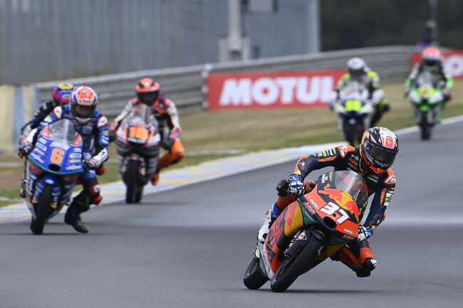 Pedro Acosta está siendo la gran revelación de la temporada. El joven piloto murciano es el líder del mundial de Moto3 después de haber ganado tres de las primeras cinco carreras del año. En Le Mans sufrió una caída bajo la lluvia, pero aún así pudo levantar y llegar a meta octavo, ampliando más su ventaja en la general.