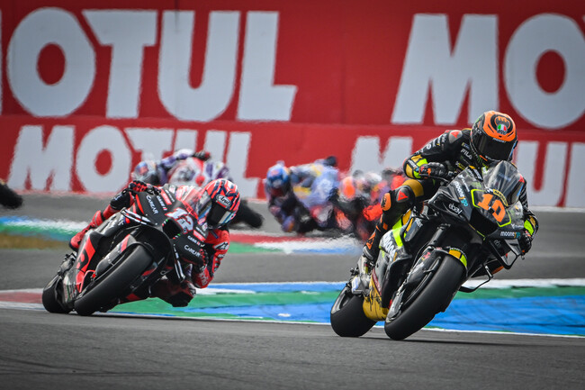 Una semana después de acabarse, el Gran Premio de los Países Bajos de MotoGP nos sigue dejando imágenes que no habíamos visto. La última de ellas la protagonizó Luca Marini durante la carrera al sprint, y fue un bonito recuerdo familiar: repitió la famosa maniobra de su hermano, Valentino Rossi, en 2015.