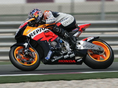 Ha comenzado el mundial, y el campeón Nicky Hayden no acaba de encontrar la puesta a punto ideal para estar delante. Marco Melandri no consigue solucionar los problemas de configuración que le da la horquilla delantera. Y solo los pilotos "pequeños" como Pedrosa o "agresivos" como Checa son capaces de hacer andar la nueva Honda. ¿Será cierto eso de que han construido la moto a la medida de Pedrosa? Pues en principio, y viendo el tamaño y las casi inexistentes fibras de la Honda, parece que si, que la moto la han hecho para alguien pequeño.