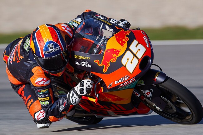 Está muy fuerte en MotorLand el sudafricano Darryn Binder, que dominó por la mañana y ha sido cuarto por la tarde. Suele crecerse los domingos, pero en Aragón está rápido ya desde el viernes. Buena sexta posición para Sergio García, séptimo Jaume Masiá y décimo Alonso López, después de tirar a su compañero Fenati en Le Mans.