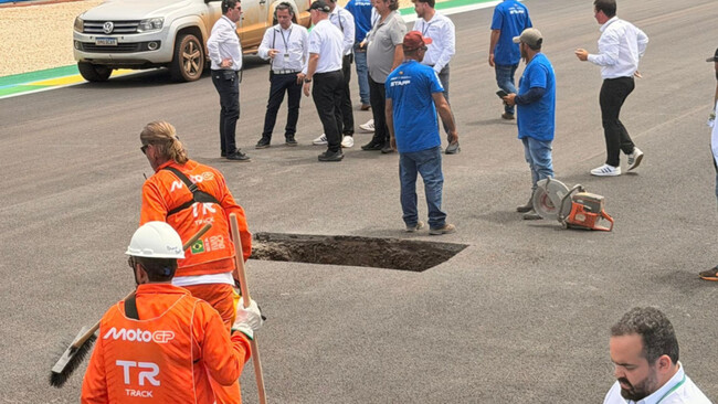 Las lluvias intensas de los días previos dejaron el circuito de Goiania muy tocado justo en la fase final de los trabajos, algo que ya encendía las primeras alarmas. Pero lo del sábado fue directamente surrealista: un socavón en la recta principal obligó a retrasar la sprint después de descubrir que bajo el asfalto había un antiguo sistema de alcantarillado que ni siquiera estaba documentado, según el comunicado.