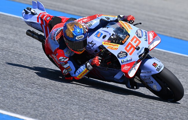 Marc Márquez ya está plenamente adaptado a la Ducati. Y la mejor prueba de ello es que en Tailandia también ha sido el piloto más rápido. El '93' ha volado en los entrenamientos en Buriram, reventando el récord del circuito a pesar de que claramente perdía tiempo en los dos primeros sectores, de pura recta, donde más de nota el mejor 'holeshot' de la GP24.