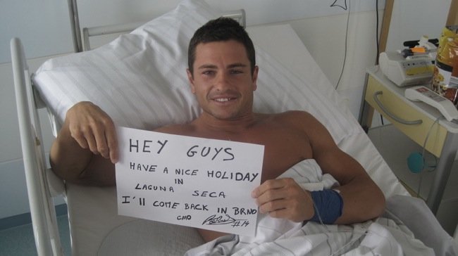 Una pena que no pueda estar en Laguna Seca. Me da que podría darle en morro a todos los locales de la parrilla: Colin Edwards, Ben Spies, Nicky Hayden y a Roger Lee Hayden juntos.
