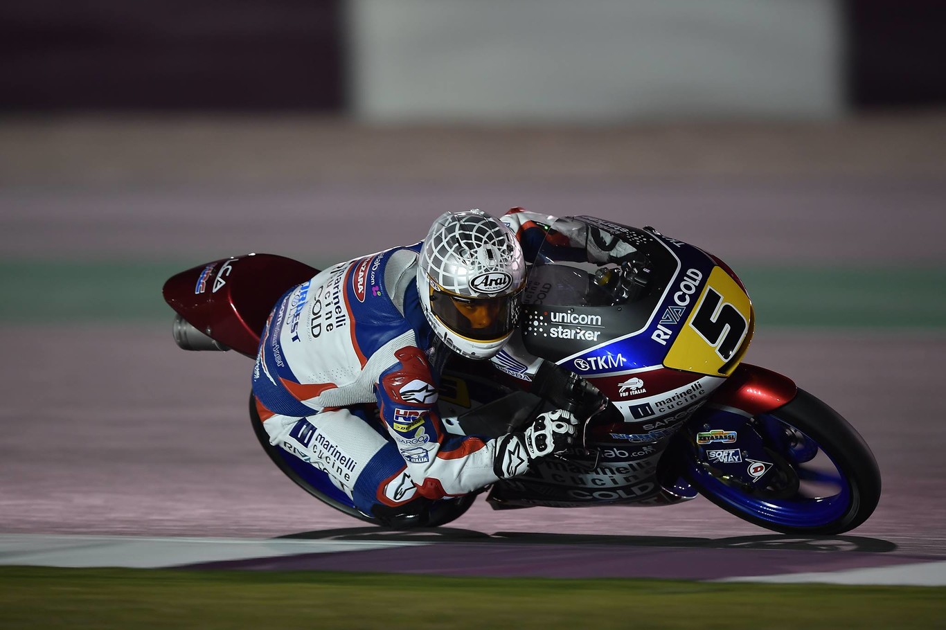 Después de incluso perder a AGV y a Dainese como patrocinadores principales por su actitud la temporada pasada, Romano Fenati ha terminado los entrenamientos de Catar demostrando que no se ha olvidado de ir en moto: fue el más rápido en la combinada de los tres días de entrenamiento. La relación con su nuevo equipo (Marinelli Rivacold Snipers) parece funcionar y su regreso a Honda (en 2012 y 2013 pilotó una FTR Honda) después de tres temporadas en KTM le abre un abanico de posibilidades.
