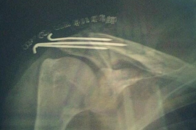 No empieza nada bien la temporada para Sam Lowes. El vigente campeón del mundo de Supersport que va a dar el salto en 2014 a la categoría de Moto2 en el Campeonato del Mundo de MotoGP se ha roto la clavícula por culpa de una caída sufrida en los primeros entrenamientos celebrados en el circuito de Jerez. En el hospital de la propia ciudad ya se le ha intervenido y se le han colocado tres clavos como podéis ver en la foto.