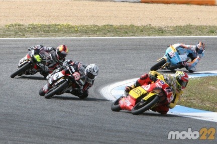 Simone Corsi, de los dos con más experiencia del grupo, con Olivé, se aprovechó de ello y parecía el más seguro de sí mismo, Nico Terol tuvo algún pequeño error, nada importante pero le apartó de lograr mejores resultados.