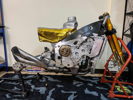 El precio no es que sea excesivo a pesar de lo que queda de la moto: 35.000 euros al cambio. Y por 6.500 euros más, el vendedor incluye llantas, discos y pinzas de freno de fibra de carbono. Vamos, una MotoGP por poco más de 40.000 euros.