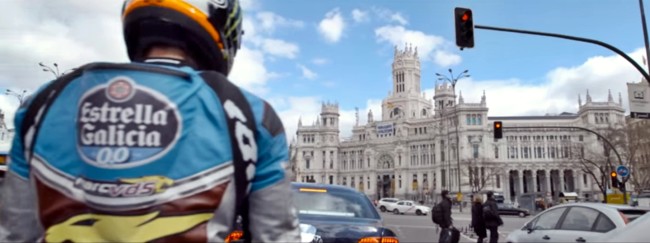 Sobre la moto decorada con los colores de su equipo, Tito salió del bar un poco pillado de tiempo y en este vídeo podemos verle circular por enclaves tan carismáticos como la Gran Vía, la Plaza de Cibeles, el Paseo de Recoletos o Atocha antes de llegar al lugar de la presentación. Ah, por cierto, las cañas eran 0,0, por supuesto.