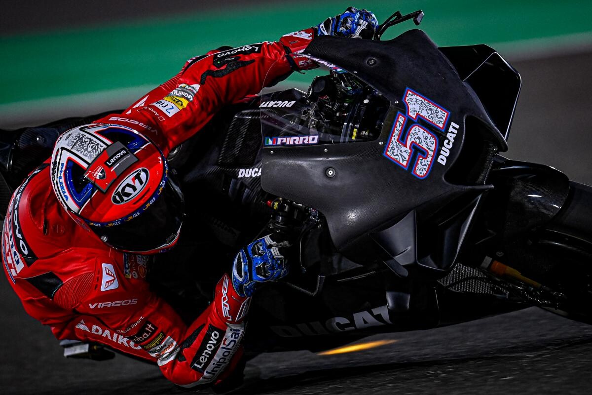 Michele Pirro ha estado trabajando en el nuevo ingenio aerodinámico de Gigi Dall'Igna: un transportador de flujo. El objetivo es reducir el grado de actuación del antiwheelie evitando los caballitos de forma mecánica, y así permitir que la electrónica no limite el motor a la salida de las curvas.
