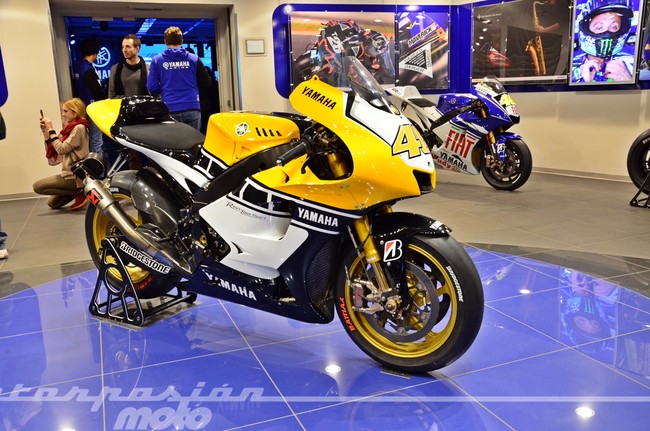 Nada más entrar por la puerta nos recibía un trío de las motocicletas más importantes para la compañía de los diapasones: la YZ450F con la que Romain Febvre devolvió el campeonato de MXGP a Yamaha desde la última corona de Antonio Cairoli en 2009 con la marca, una imponente M1 de Valentino Rossi y la Yamaha YZF-R1 de Alex Lowes para el WSBK de 2016. Pero el plato fuerte eran las nada menos que siete Yamaha YZF-M1 de MotoGP expuestas: