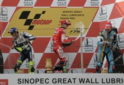 Como hemos estado hablando toda la semana, el GP de China con sus dos largas rectas, era un lugar idóneo para que Stoner sumara una nueva victoria, y así ha sido. Se empeñó Valentino Rossi en intentar evitarlo, pero nada podía hacer su Yamaha contra los más de 333 km/h de velocidad punta que alcanzaba la Ducati.