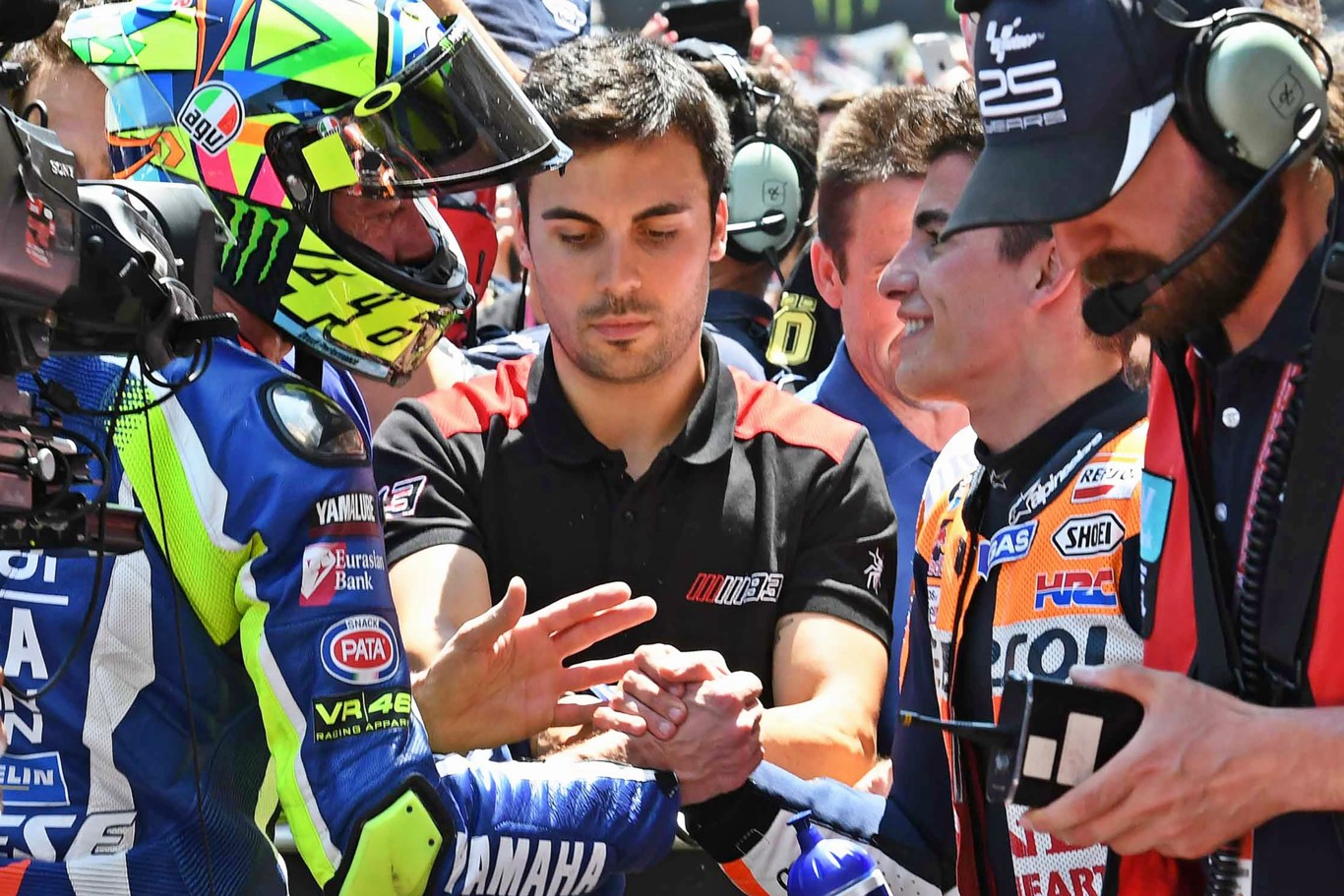 Lo importante es que Valentino y yo nos hemos dado la mano, que también es un hecho que el motociclismo se merecía. Hoy era el mejor día para hacerlo, hemos tenido una batalla bonita, un fin de semana que hemos visto que todos los pilotos al final somos humanos y nos tenemos que respetar porque al final no sabes lo que va a pasar. Creo que se ha visto una bonita carrera, es lo más importante. Ha sido una bonita batalla por Luis Salom.