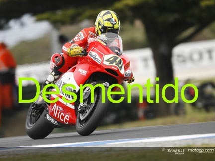 Parece que a los periodistas italianos les ha podido las ganas de ver a Valentino de Rojo Ducati y no se han parado a contrastar las fuentes de la noticia. Nosotros mientras parece que si veremos a pilotos españoles sobre las Ducati, pero eso es otra noticia que tendrá su propia entrada en el blog.