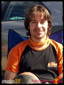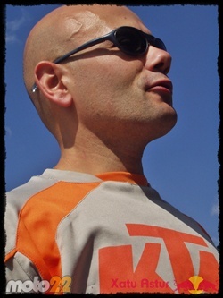 Si Cibrics es el más caliente, y Noss el que más inventa, Router es el que más lee, busca y se mueve dentro del mundo del supermotard. Se ve todas las carreras, lee todos los artículos... piensa en motos 24 horas al día. Y su fiebre nos contagia. Corre con el 98, y como es el más menudo de los tres, se acopla perfectamente a la moto, por lo que se le reconoce rápidamente.