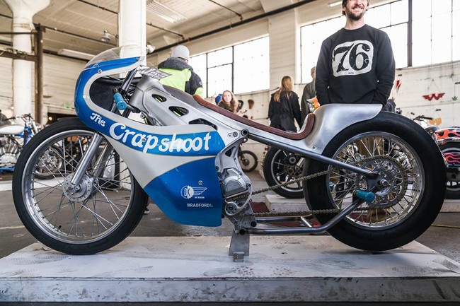 Bautizada como "The Crapshoot" (algo así como el disparo de mierda), esta cusomización parece sencilla, pero ha tenido que ser fruto de un proceso de diseño y construcción realmente complicado. La base escogida no ha sido precisamente la más apropiada para crear una moto que simula ser una de hace más de medio siglo, pero el resultado resulta bastante interesante.