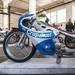 El tren delantero procede de una Honda CB350, la rueda delantera y el pedal de freno trasero vienen de una Harley-Davidson Sportster y el carenado envolvente se ha creado a medida en fibra de vidrio y se ha pintado a mano.