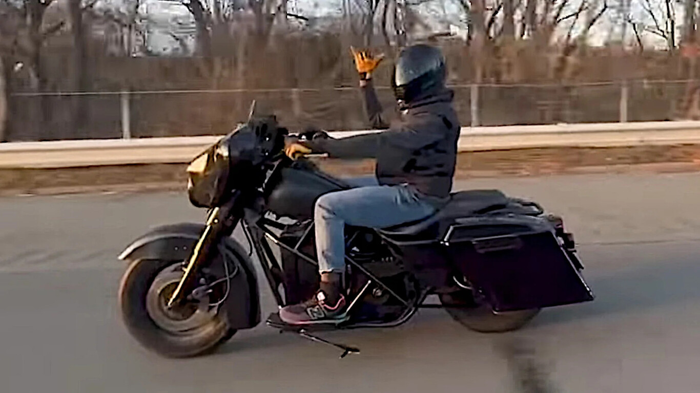 Una configuración de lo más que choca directamente con ese carácter rudo y bronco que desprenden las Harley-Davidson con sus roncos y musculosos propulsores y que incluso los norteamericanos se han atrevido a sacar a la vía pública, y parece funcionar a las mil maravillas.