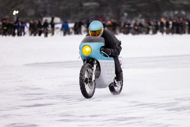 Y ahora viene el récord, o más bien los tres récords. En mitad de un lago helado en su tierra natal como escenario principal, el último fin de semana de febrero lograron tres récords seguidos: motocicleta eléctrica más rápida sobre hielo (155,14 km/h), motocicleta eléctrica A1 más rápida sobre hielo (135,03 km/h) y modelo de producción de motocicleta eléctrica más rápido sobre hielo (114,3 km/h).