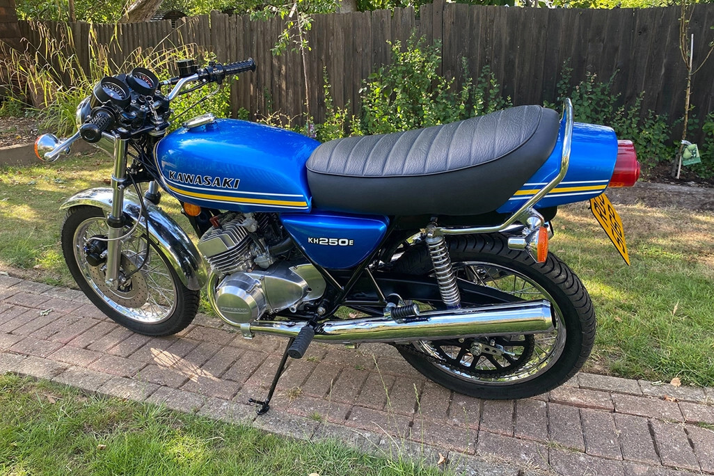 La Kawasaki KH250 traía de fábrica un tricilíndrico de dos tiempos y 249 cc que rendía 27 CV a 7.5000 RPM. La moto estaba en un estado totalmente indecente: llena de óxido, sin manillar ni asiento... Prácticamente quedaba el esqueleto de ella.