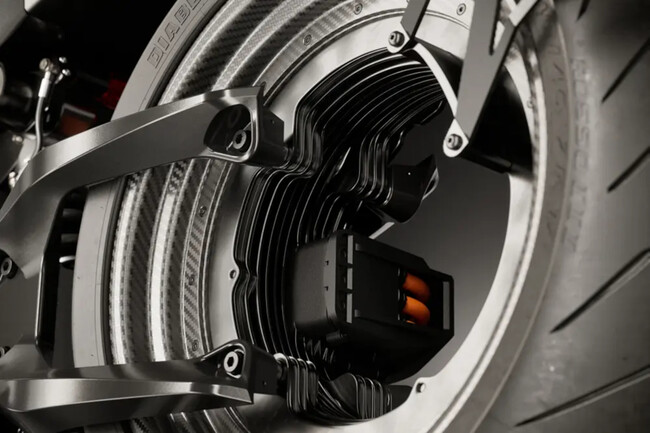 Todo sigue girando alrededor de su elemento más polémico: el motor integrado en la rueda trasera, sin buje, sin transmisión y sin concesiones a la ortodoxia. Un sistema electromagnético que elimina piezas mecánicas y reduce mantenimiento, pero que sigue siendo difícil de digerir para el motorista clásico. Da igual. Esta moto no está pensada para convencer a los de siempre, sino para demostrar que el problema de la eléctrica ya no es técnico