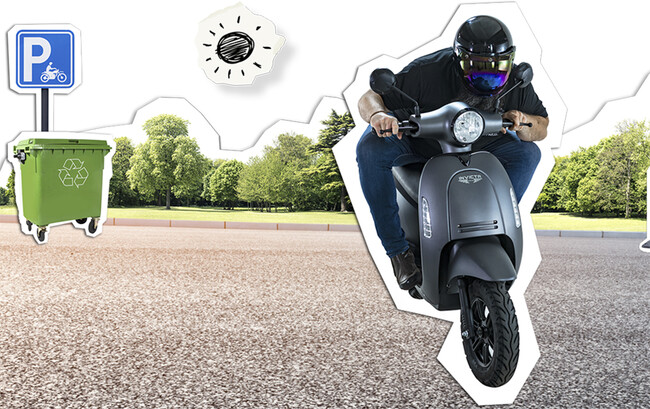 Detrás de esta marca española con cierta independencia está el grupo chino Geely, propietario de la misma y una pista del tipo de moto de bajo coste que podemos esperar. La estética es muy similar a la de otros ciclomotores de marcas generalistas y recuerda especialmente al modelo de Piaggio.