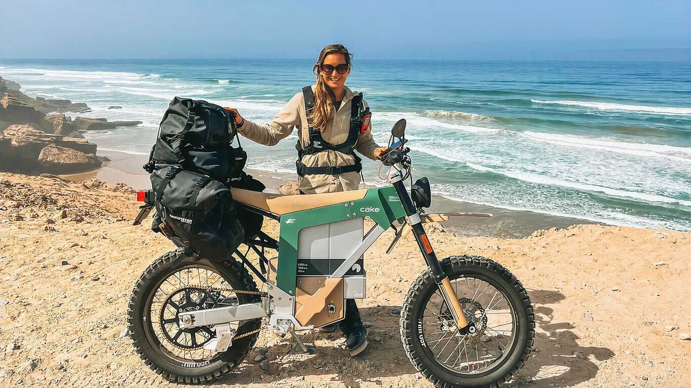 La moto elegida fue una de la firma para la que trabajaba: una CAKE Kalk AP. Y tiene relación simbólica con su viaje por África. La Kalk AP (Anti-Poaching o Anti-Caza furtiva) está ligada a la lucha contra la caza furtiva de animales en Sudáfrica y a la protección de la biodiversidad. De hecho solo salieron 50 unidades en venta de esta edición, cuyo valor era de 25.000 euros.