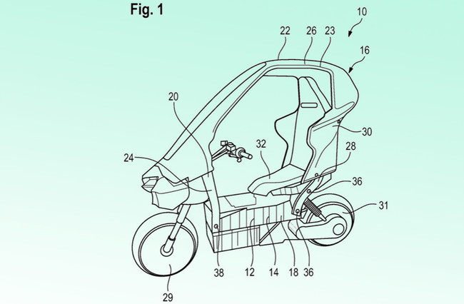 Así que 20 años después y tras haber vivido la muestra del prototipo 'cero emisiones' BMW C1-E en 2009 y de alguna patente hace apenas unos meses, ahora la firma bávara ha registrado en un corto período de tiempo una gran cantidad de patentes que muestran lo que sería el renacimiento del scooter BMW C1, eso sí, ahora con sistema de propulsión eléctrico.