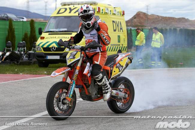Este pasado fin de semana arrancó la primera cita del Campeonato de España de Supermotard 2012 en la localidad alicantina de Villena. El Circuito Chicharra Karts de Villena acogió por segunda vez una prueba del Campeonato de España que además este 2012 ha cambiado la denominación de sus categorías: SMOpen, SMPromesas, SMAficionados, SMAficionados 30 y SMRoad. Además, los pilotos pueden elegir si correr con neumáticos Michelin o Goldentyre, los mismos que se usan en el mundial de la especialidad.