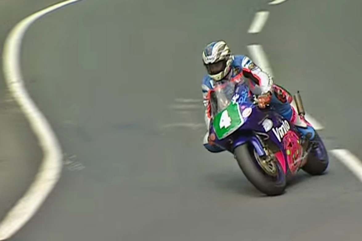 En realidad hay que remontarse un poco más atrás en el tiempo, porque fue con 24 años la primera vez que el piloto de Morecambe participó por primera vez en la road race más prestigiosa del mundo. Tuvo que esperar tres años hasta que en 1999 y subido a una TSR Honda de 250 cc lograba alzarse ganador en la categoría Lightweight 250 TT, y aquí están las imágenes de su primer triunfo.