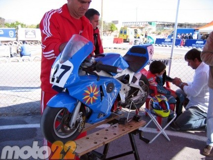 Paralelo al campeonato Bancaja también se estaba celebrando una carrera del Territorial de la comunidad Valenciana, donde las motos las prepara cada equipo y puedes ver auténticos cohetes a escala. Comentando con Javi, el mecánico de Alex, me ha dicho que la Polini que lleva Alex alcanza las dieciséis mil revoluciones y que no tiene nada que envidiarle a una autentica moto de GP comparando los pesos de la moto y del piloto.