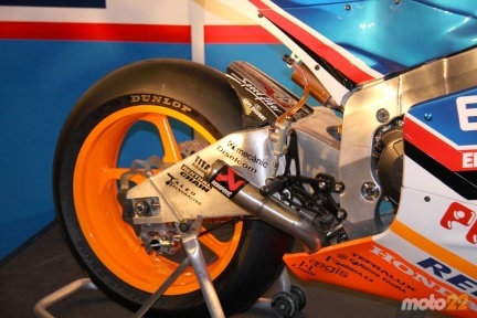 La moto a primera vista es muy compacta, y como la mayoría de los presentes apuntaban, está entre una 250 y una MotoGP. El colín es de pequeñas dimensiones, y recuerda más a estás últimas, mientras que el carenado delantero podría pasar por el de una estilizada 250. Su peso es de solo 137 kilos.