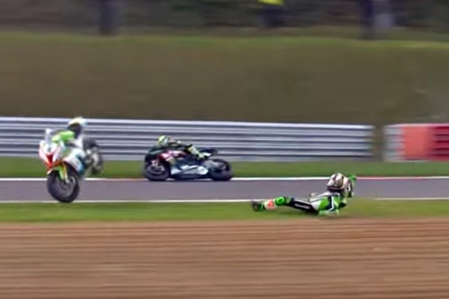 Leon Haslam, piloto del JG Speedfit Kawasaki en el Campeonato Británico de Superbikes, sufrió ayer una de las caídas más espectaculares y brutales que hemos podido ver en los últimos tiempos. Lamentablemente, su Kawasaki ZX-10RR se quedó sin frenos en una de las curvas más rápidas de Brands Hatch, uno de los trazados más salvajes y en algunos puntos más inseguro de Gran Bretaña.