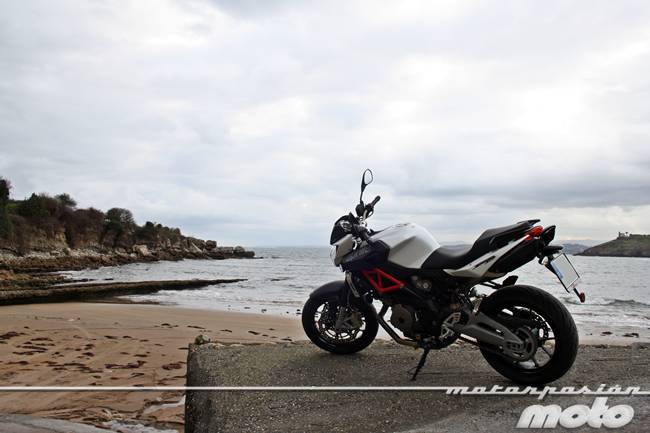 Por otro lado la postura es muy cómoda. A pesar de de no tenemos nada de protección aerodinámica, prácticamente no se nos cansaran nada los antebrazos ni las muñecas y el asiento, muy amplio y bastante más mullido en su parte posterior, nos permitirá cambiar la postura con frecuencia para evitar que nos cansemos. Los estribos tampoco nos obligarán a llevar excesivamente flexionados los pies por lo que las rodillas no sufrirán demasiado. Por último, el viento se deriva con eficacia en la zona de las piernas y no tienden a abrirse como en otras motos similares.