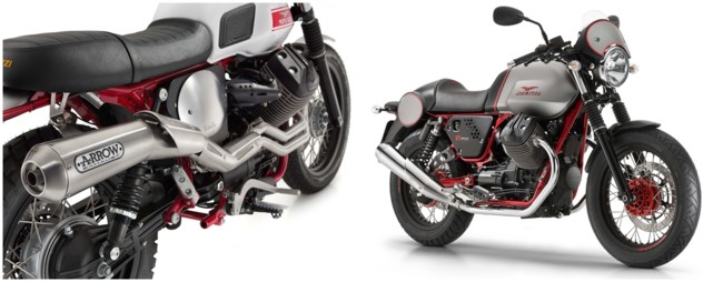 A la "vieja" V7 se le añade un asiento largo sin elevaciones, un tubo de escape elevado firmado por Arrow y pegado al colín de líneas rectas y gomas de tacos. La carrocería también cambia y adopta portanúmeros sobre el faro y los laterales de la carrocería, guardabarros largos en aluminio, fuelles en la horquilla y todo el chasis y subchasis terminados en rojo.