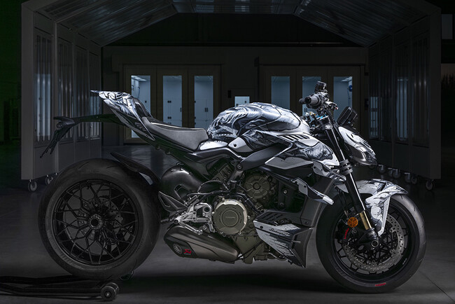Ducati y Lamborghini lo han vuelto a hacer. Y de qué manera. La dupla de fabricantes italianos se ha sacado de la manga una moto que es un monumento, casi literalmente. La base de semejante preciosidad es una Streetfighter V4.