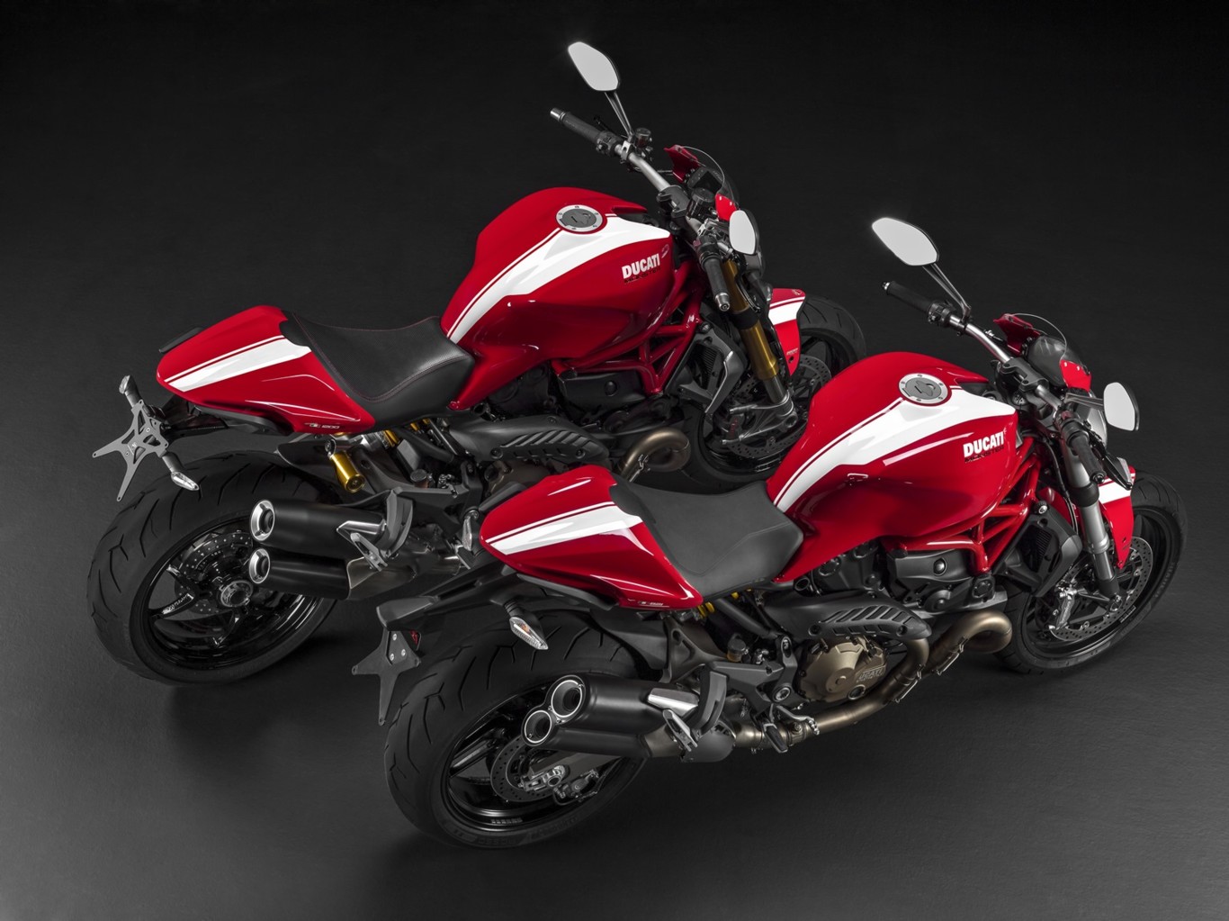 La presentación oficial se hizo en el Salón EICMA de Milán a finales del año pasado, y ta podemos disfrutar de las versiones 821 y 1.200. La última, la Ducati Monster 1200 Stripe, destaca por su rojo Ducati con una franja blanca que va longitudinalmente desde el guardabarros delantero por el depósito hasta el colín. Además de contar con unas llantas negras y un chasis también rojo.