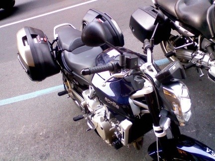 La Mana, en versión turística, con maletas laterales ha sido fotografiada en el centro de Turín por Bibendus, un lector del blog italiano, que ya había visto la moto en el salón de Milán el año pasado. Es curioso que la moto que le acompaña es una BMW R850R ¿Será para comparar prestaciones? Veremos lo que tardan en presentárnosla oficialmente.