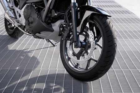 Como ya he dicho anteriormente, todo en esta moto está pensado para que la diversión y el uso diario sea lo que busquemos en ella. La Honda NC700S monta un chasis de acero de tipo diamante con una niveles altísimos de rigidez buscando precisamente eso, agilida y una respuesta inmediata. Teniendo en cuenta el volumen del motor, este bastidor se presenta como ideal para ofrecer un comportamiento dinámico excepcional. La suspensión delantera es una horquilla telescópica de 41mm con amortiguación hidráulica, mientras que la trasera usa un monoamortiguador con la configuración Pro-Link de Honda, perfecta para soportar los baches a la vez que ofrece un excelente control y tacto en superficies lisas.